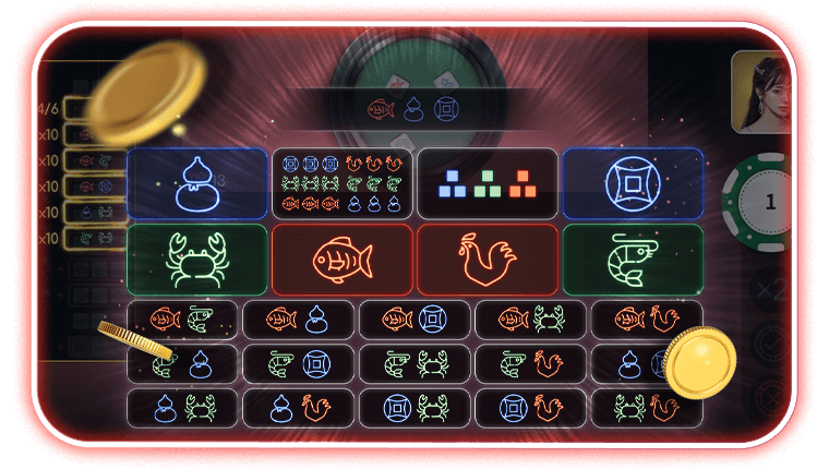 Fish Prawn Crab is a dice game widely played in the continent and it comes with different variations across different countries. “Classic Fish Prawn Crab” is the traditional version of this game! Using a dice cup and three dice, players can place bets to predict the symbols or combinations before the countdown is over.
